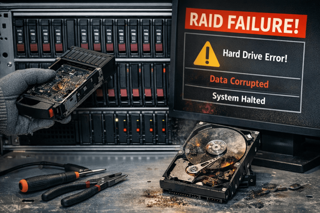 - Hệ thống lưu trữ phức tạp: NAS hoặc RAID lỗi cấu hình.