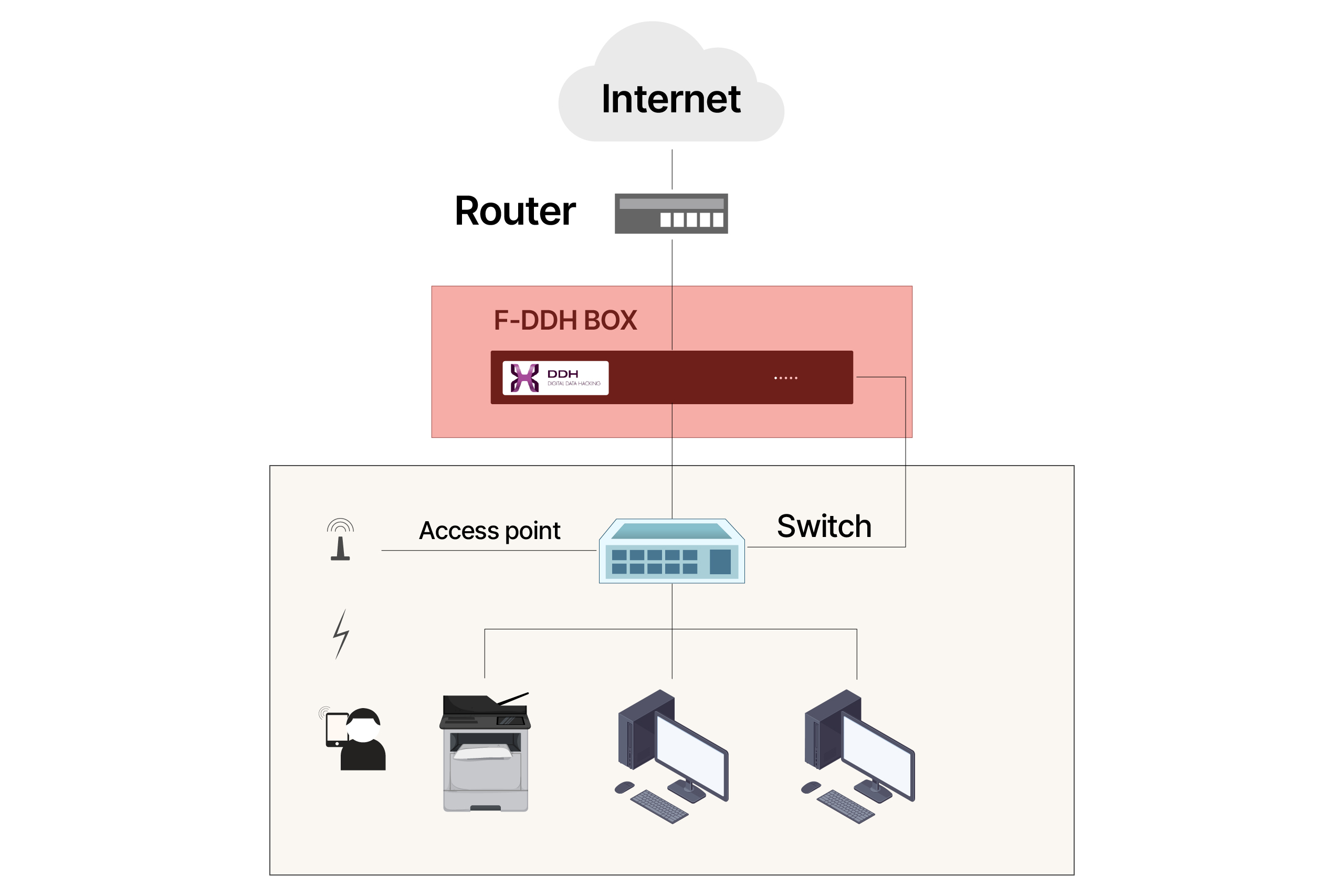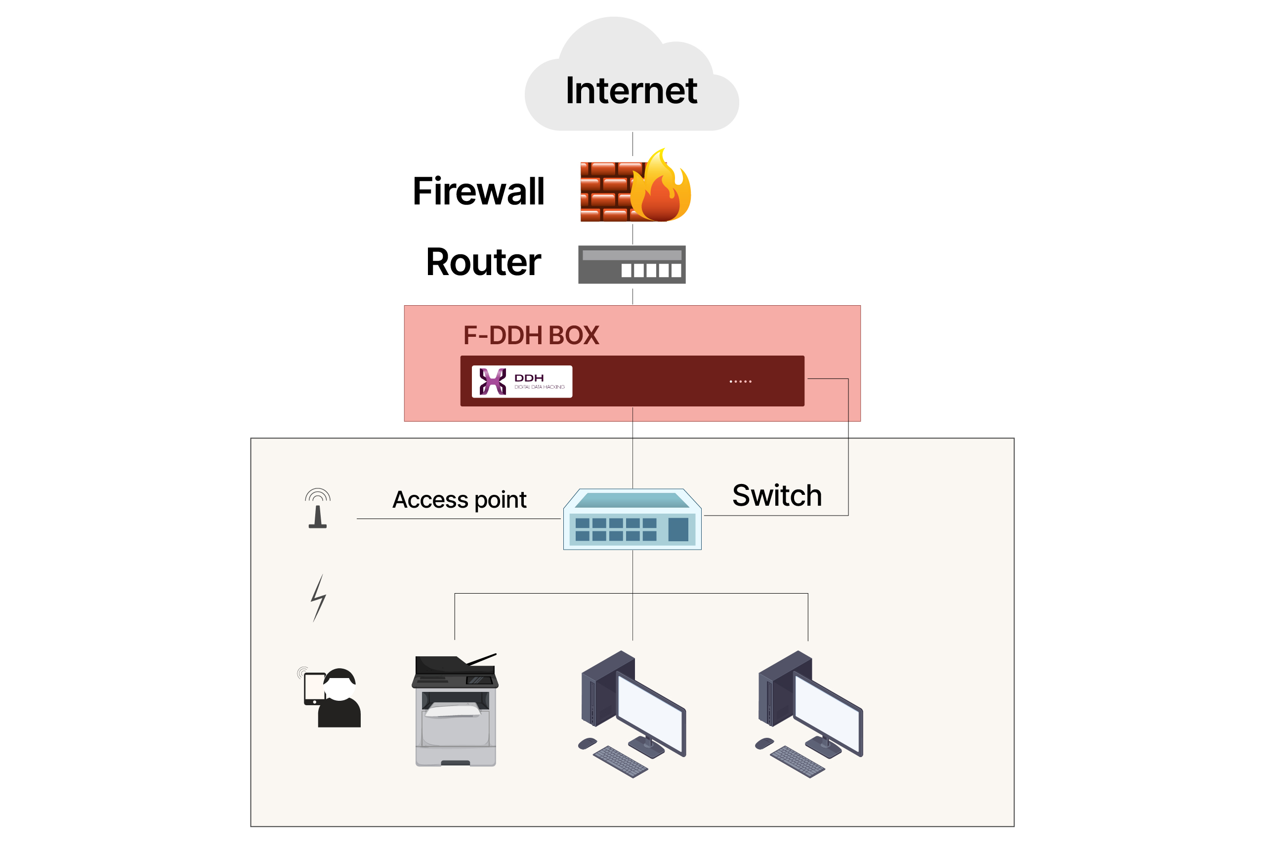 F-DDH Box chủ động "bảo vệ lớp thứ 3" trong hệ thống bảo mật giúp doanh nghiệp không bị rò rỉ dữ liệu ra ngoài.